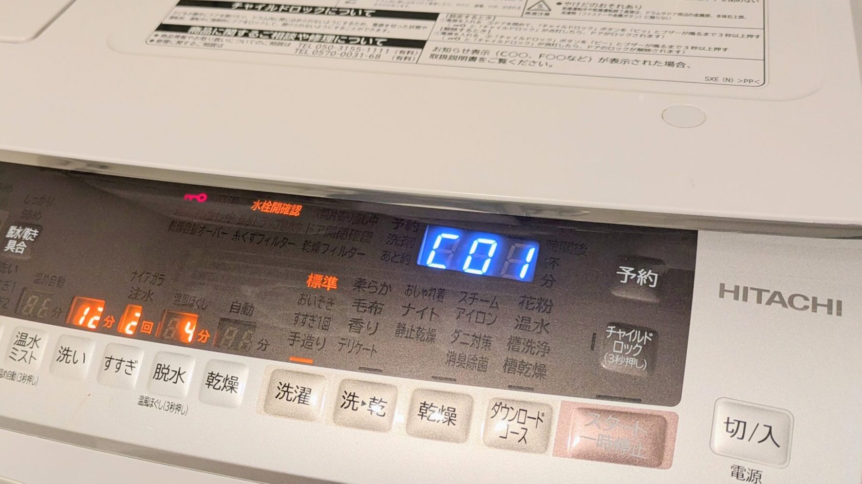 日立のドラム式洗濯機を使用して五年が経過した頃、洗濯を開始したとしても5分くらいでエラー音がなり、C01のエラーコードが出て運転が止まってしまう症状が続いていました。